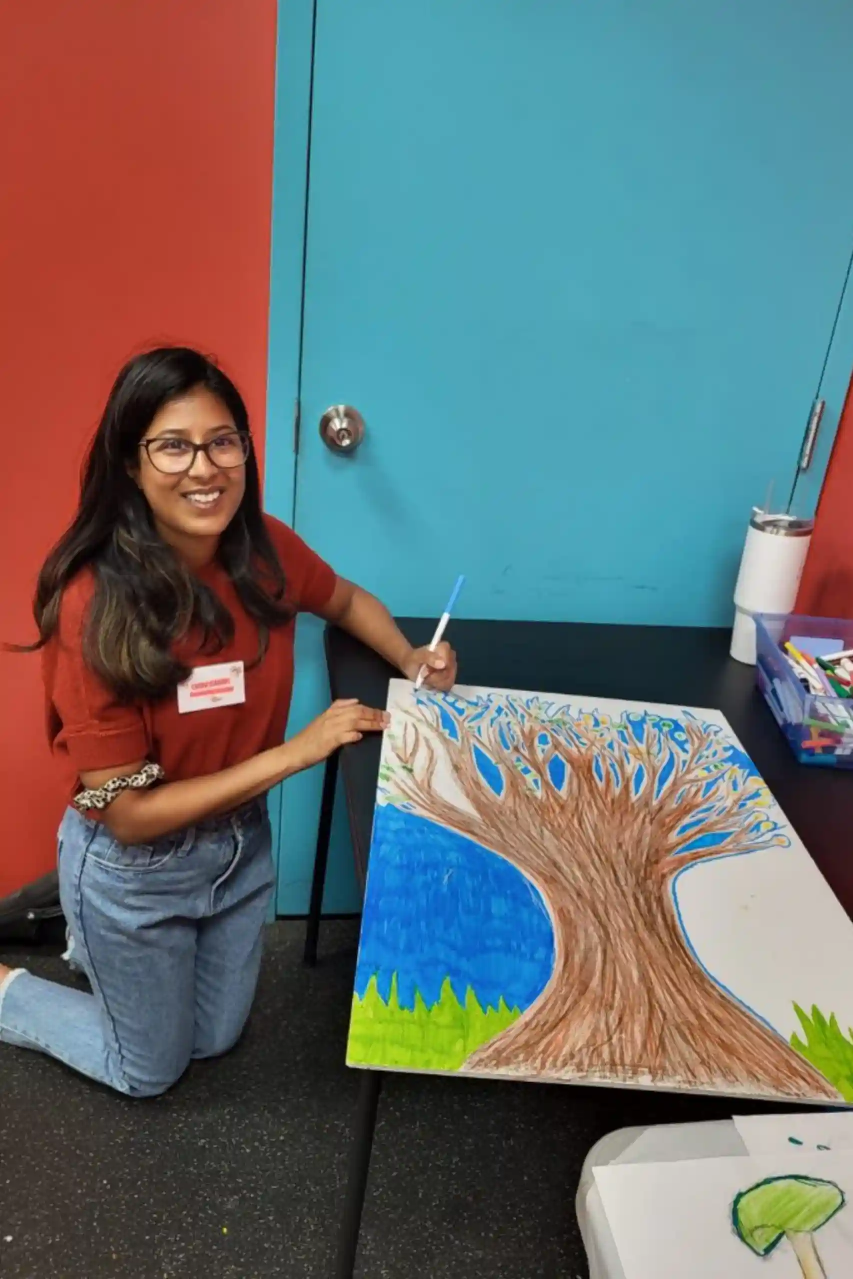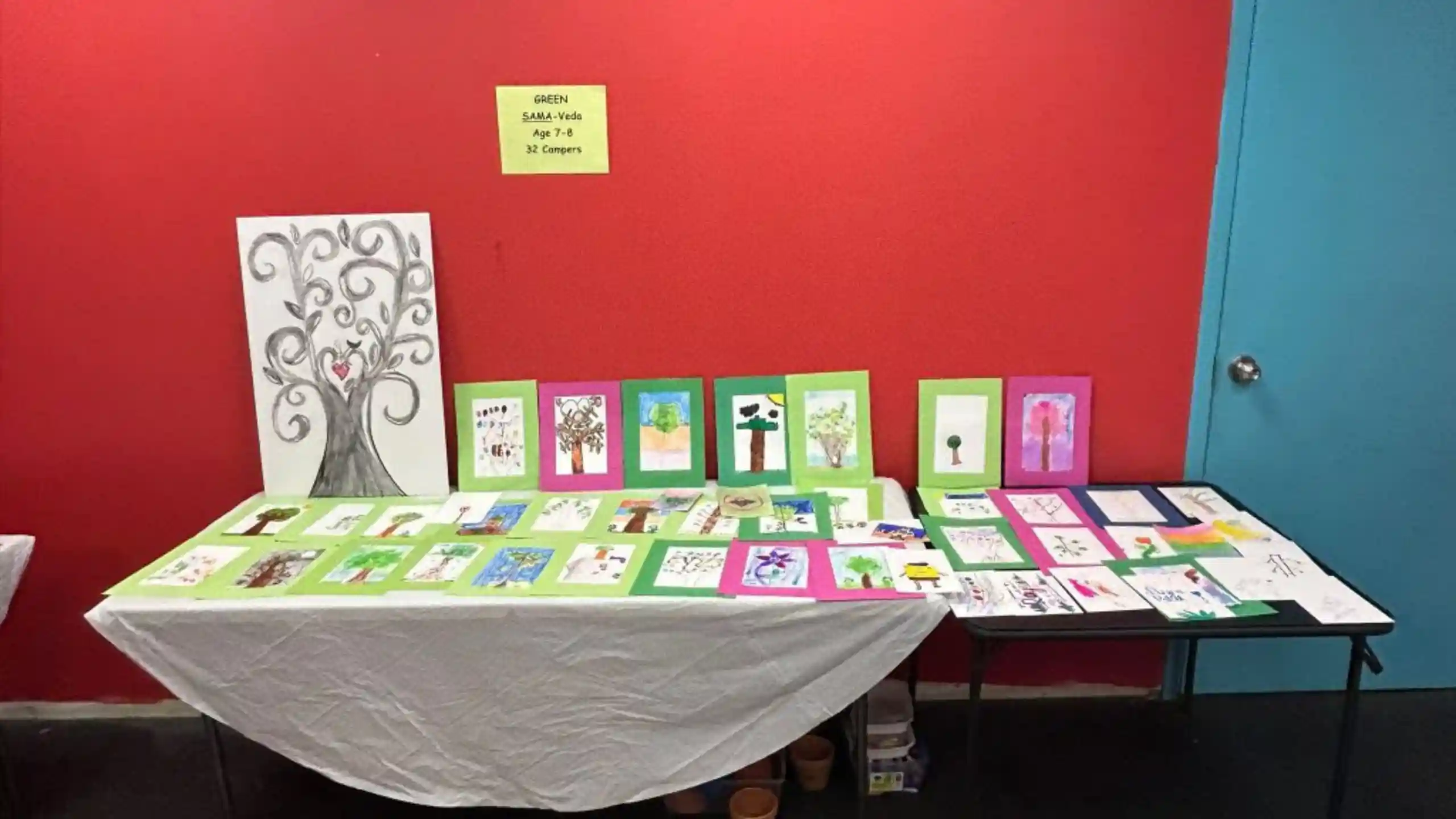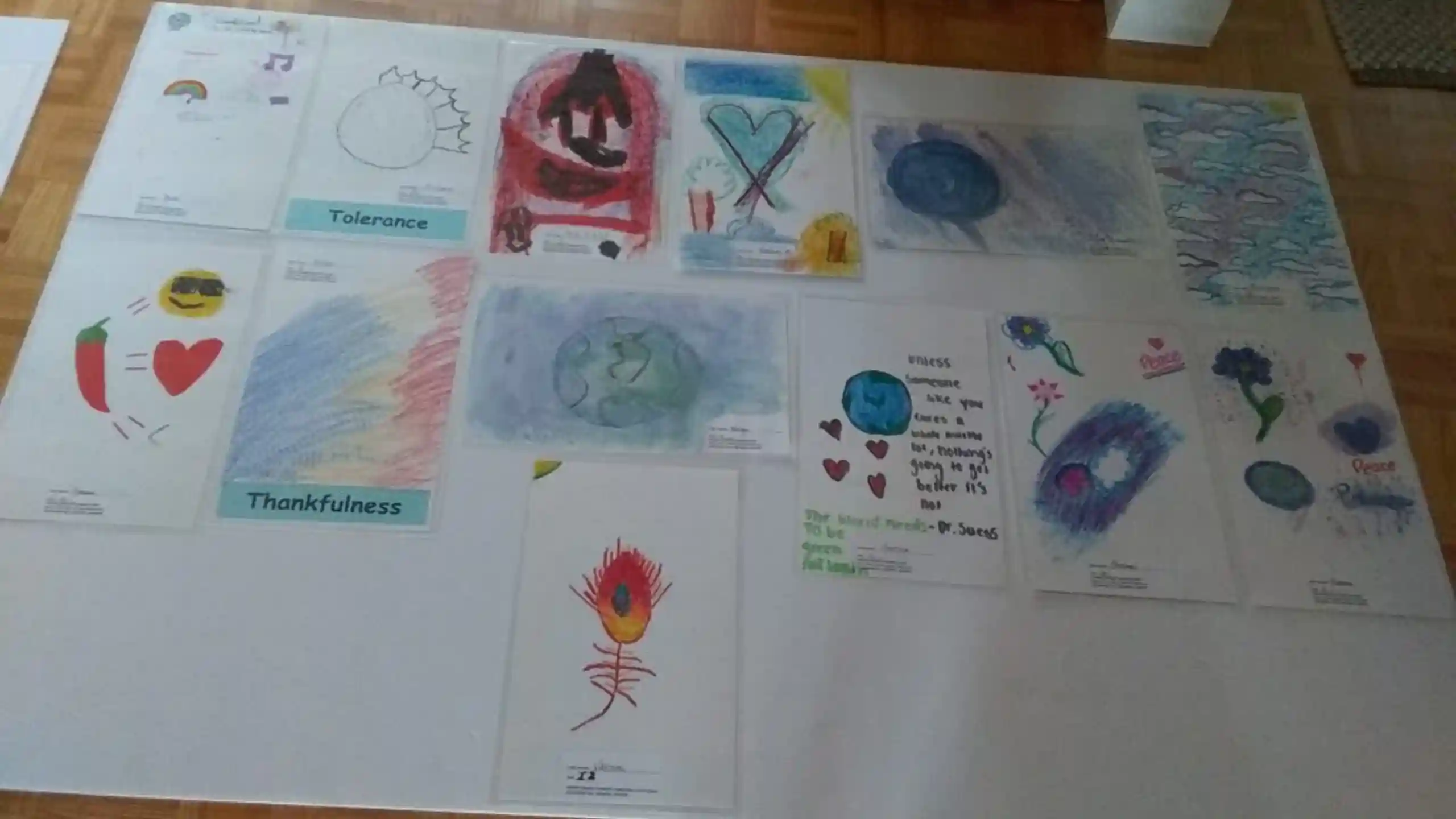 Inspired by the visit of the International Peace Run Team visiting the Peace Park on July 29, 2023, the Summer Camp held a Peace Project art activity with its 112 campers. Each camper created a poster promoting peace, and 43 of those posters were donated to the International Peace Run Team who brought the campers’ artwork to Chicago, to be displayed at the “Art from the Heart” exhibit, concurrent with the Parliament of the World Religions celebrating 130 years. Parliament convenings attract participants from more than 200 diverse religious, indigenous, and secular beliefs and more than 80 nations.