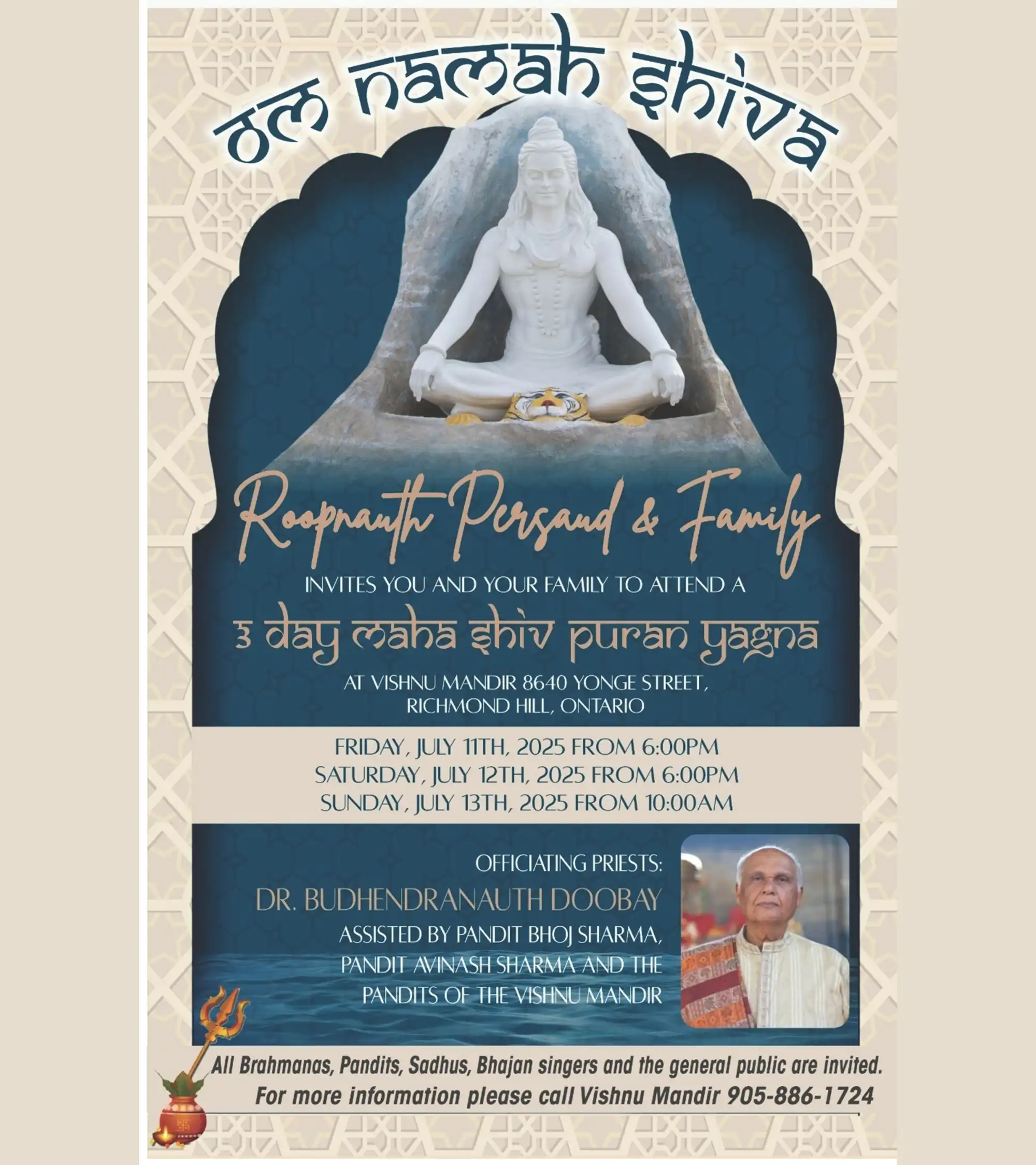 Puja, Kirtan, Pravachan, Bhog, Aarti, Bhojan