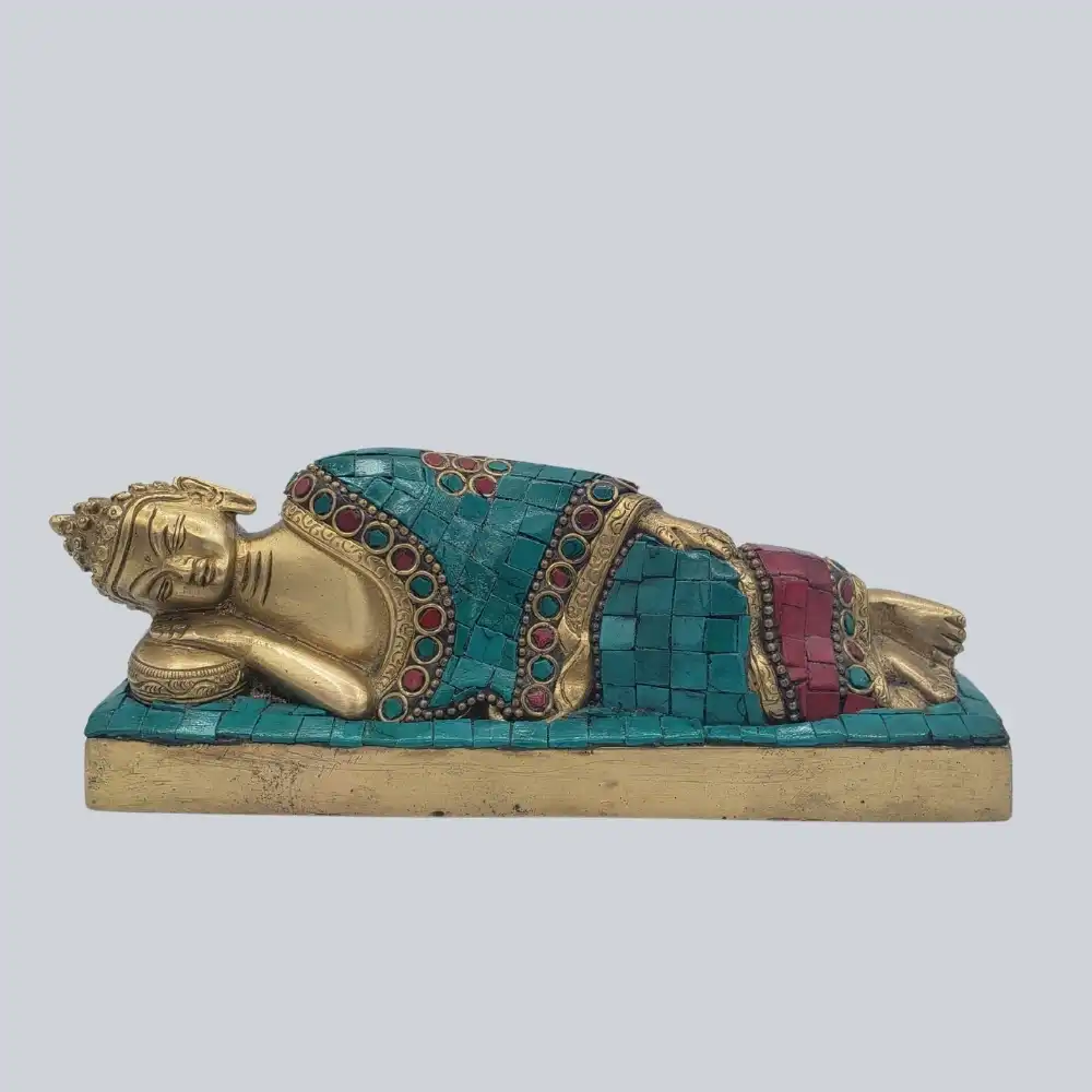 HomeGift ShopBrass MurteeBUDDHA SLEEPING BRASS STONEWORK BUDDHA SLEEPING BRASS STONEWORK$79.99 BUDDHA SLEEPING BRASS STONEWORK quantity Buy now SKU: 2358 Category: Brass Murtee Product ID: 2814 Description Description Hand-carved Reclining Buddha in brass with turquoise gemstones 10″ Reclining